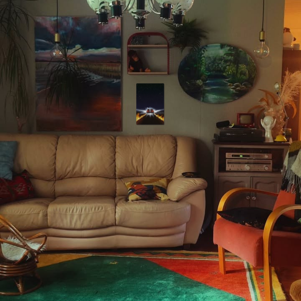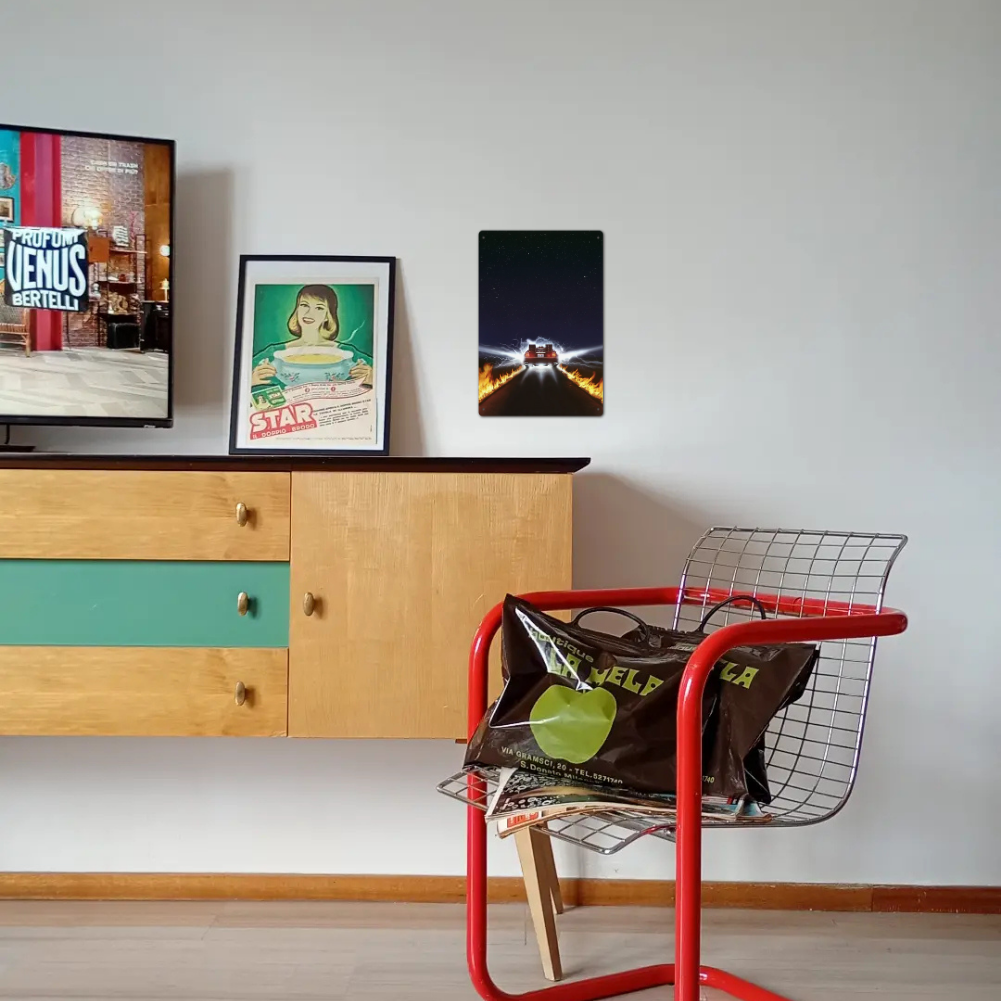Fire up the flux capacitor—this vintage-style Back to the Future tin sign puts the iconic DeLorean front and center. A bold, cinematic print that instantly upgrades a garage, game room, bar, or home theater.