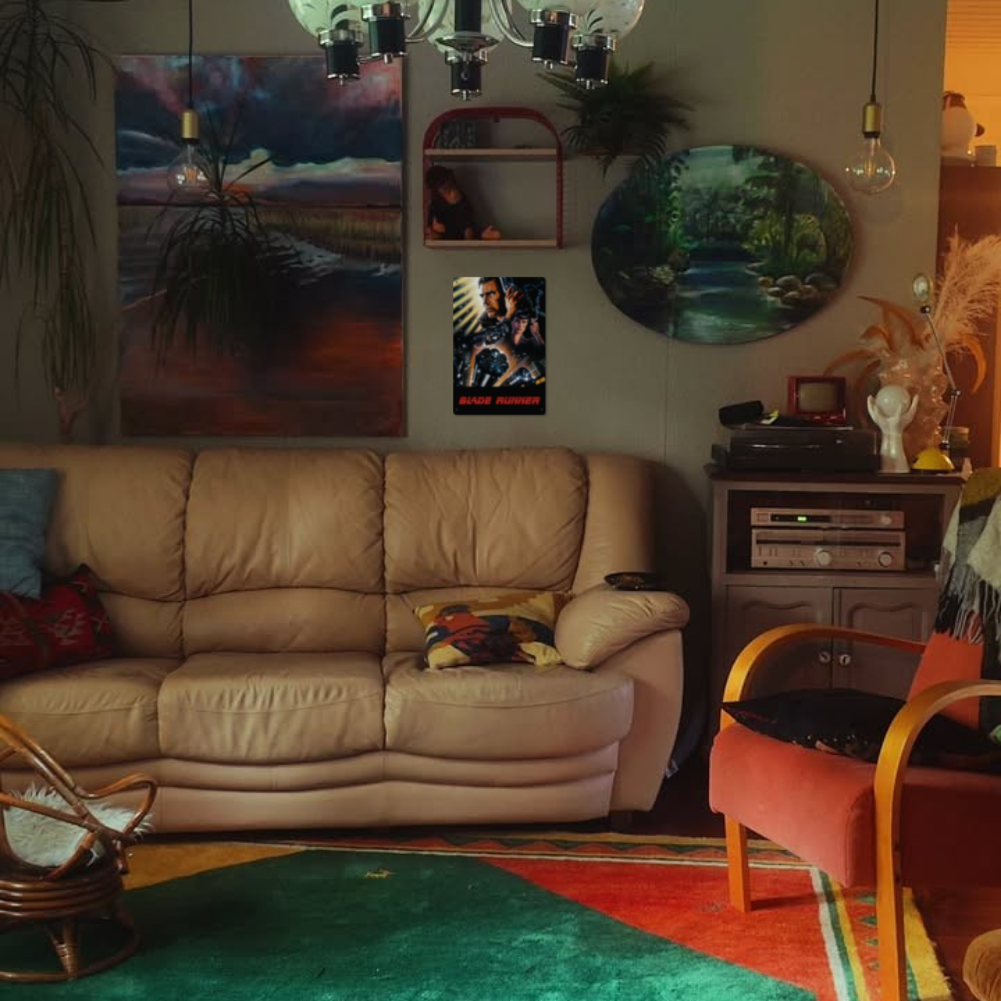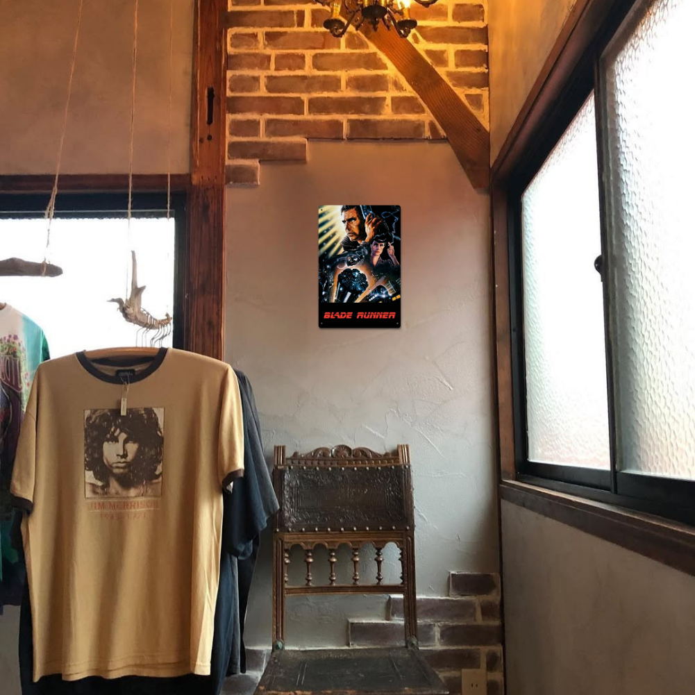 Neon noir, turned up to cinematic. This Tin Sign spotlights the classic Blade Runner poster—Deckard under hard light, Rachael in drifting cigarette smoke, and futuristic towers cutting through a rain-soaked night. It’s the moody charge your sci-fi corner deserves.