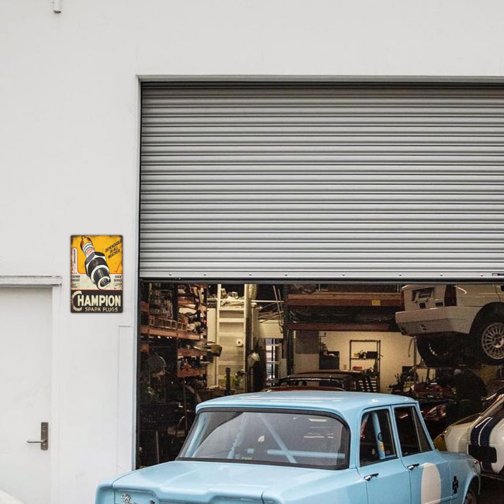 Fire up your wall décor with this vintage-style Champion Spark Plugs tin sign. Bold graphics and a weathered patina give it that authentic service-station look.