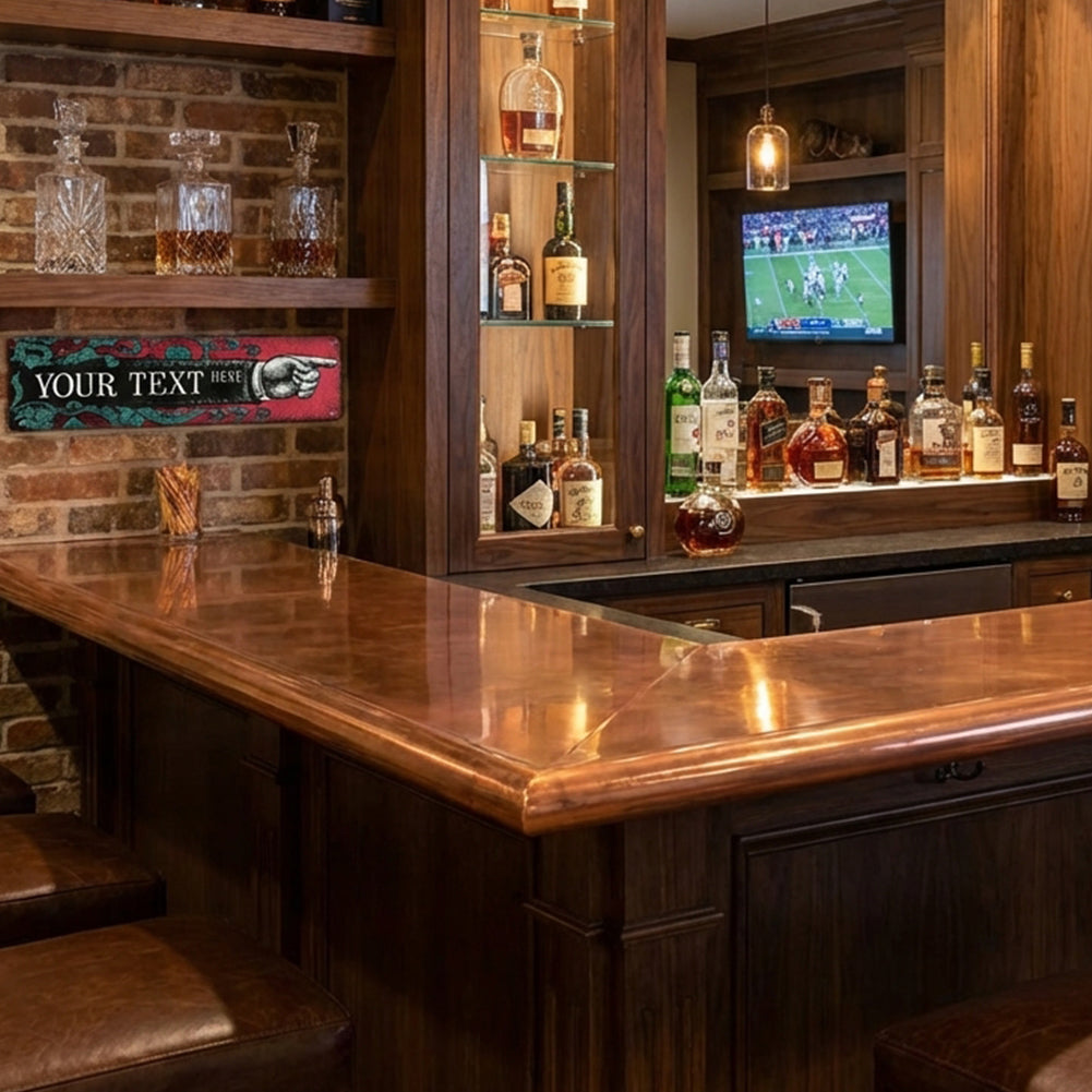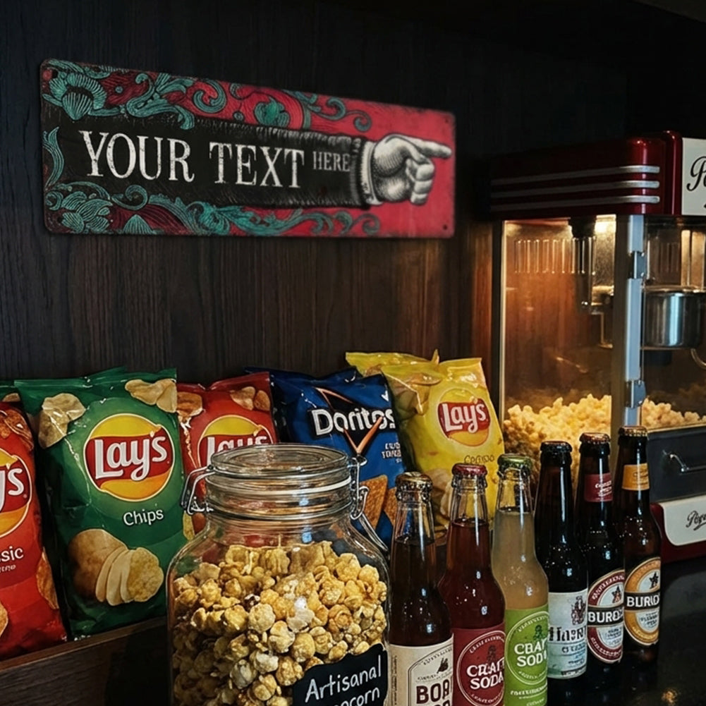 Add your own custom text to create a unique directional sign for bars, game rooms, home theaters, or personal spaces.