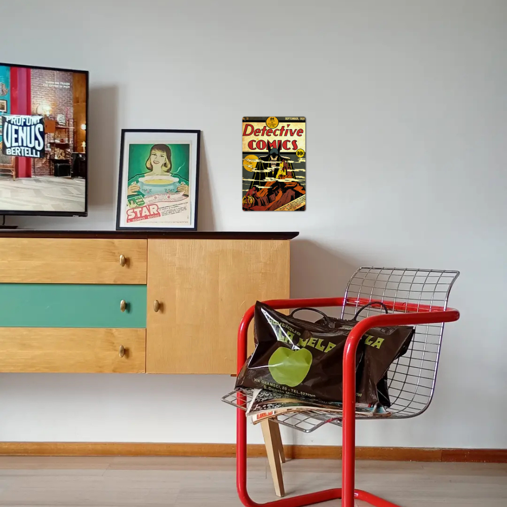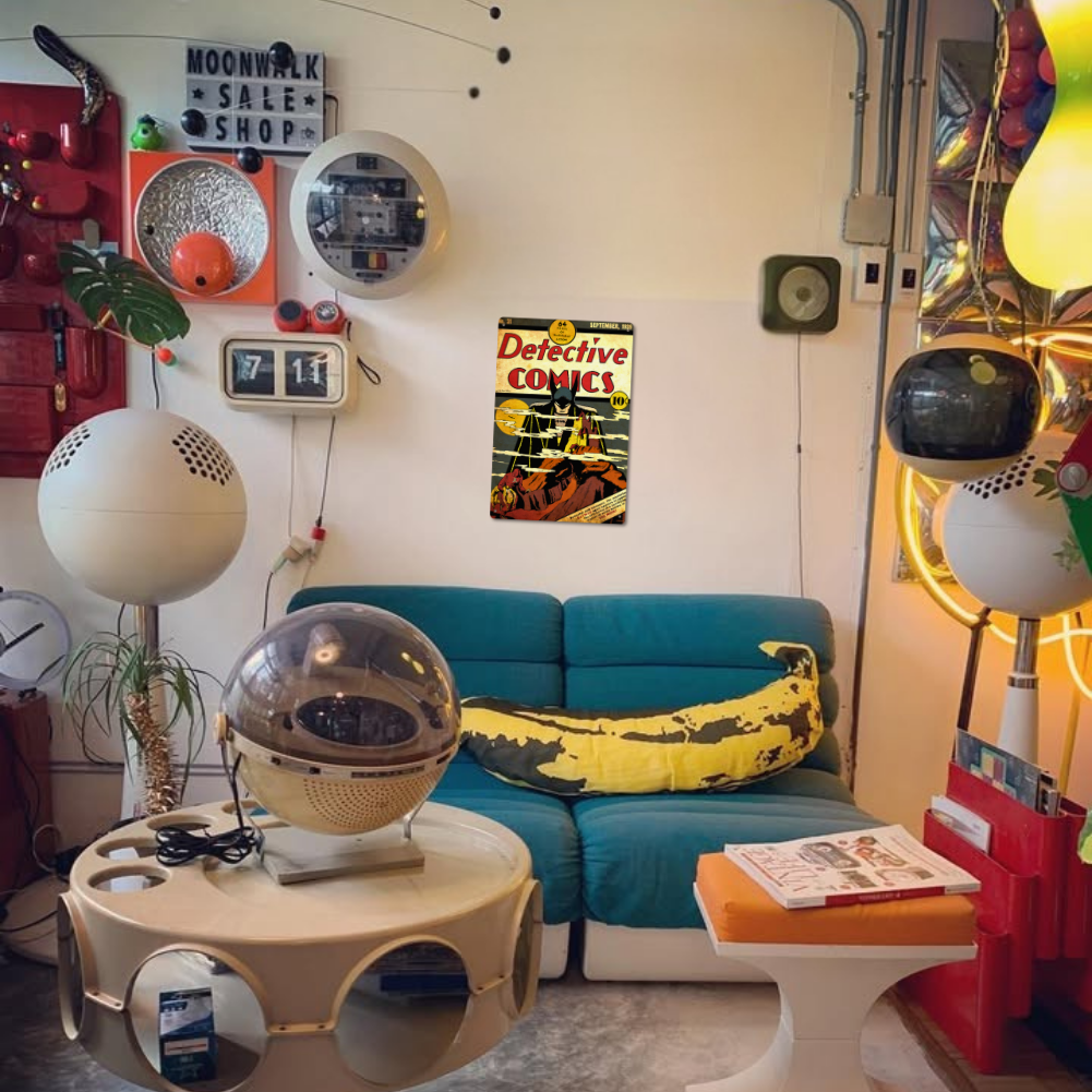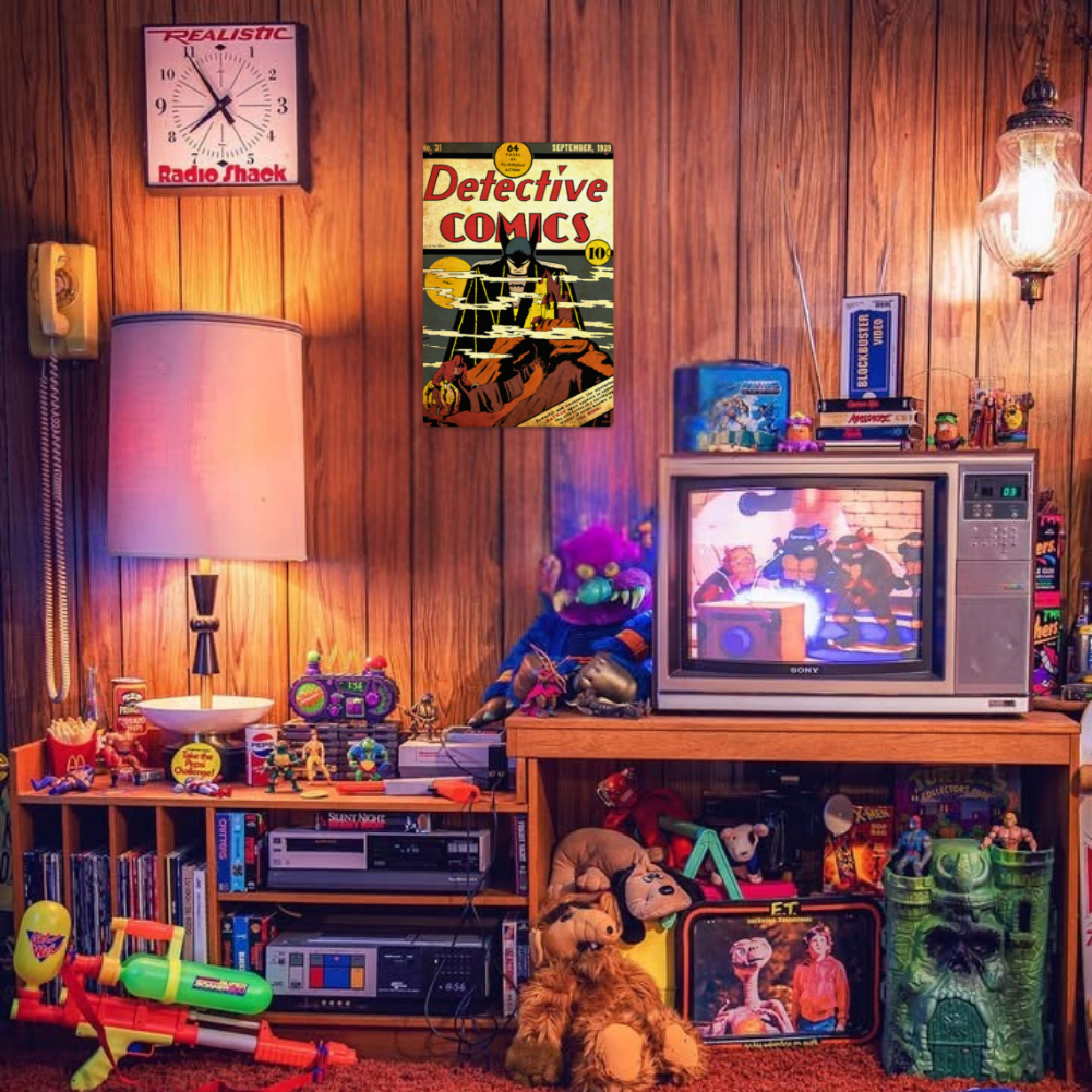 Golden Age Gotham, pure mood. This vintage print recreates the eerie 1939 cover of Detective Comics #31, where a shadowed Batman looms over a mist-wreathed castle as The Monk prowls the cliffs below. Expect bold pulp colors, heavy inks, and that haunting, early-Batman atmosphere that defined pre-war comics.