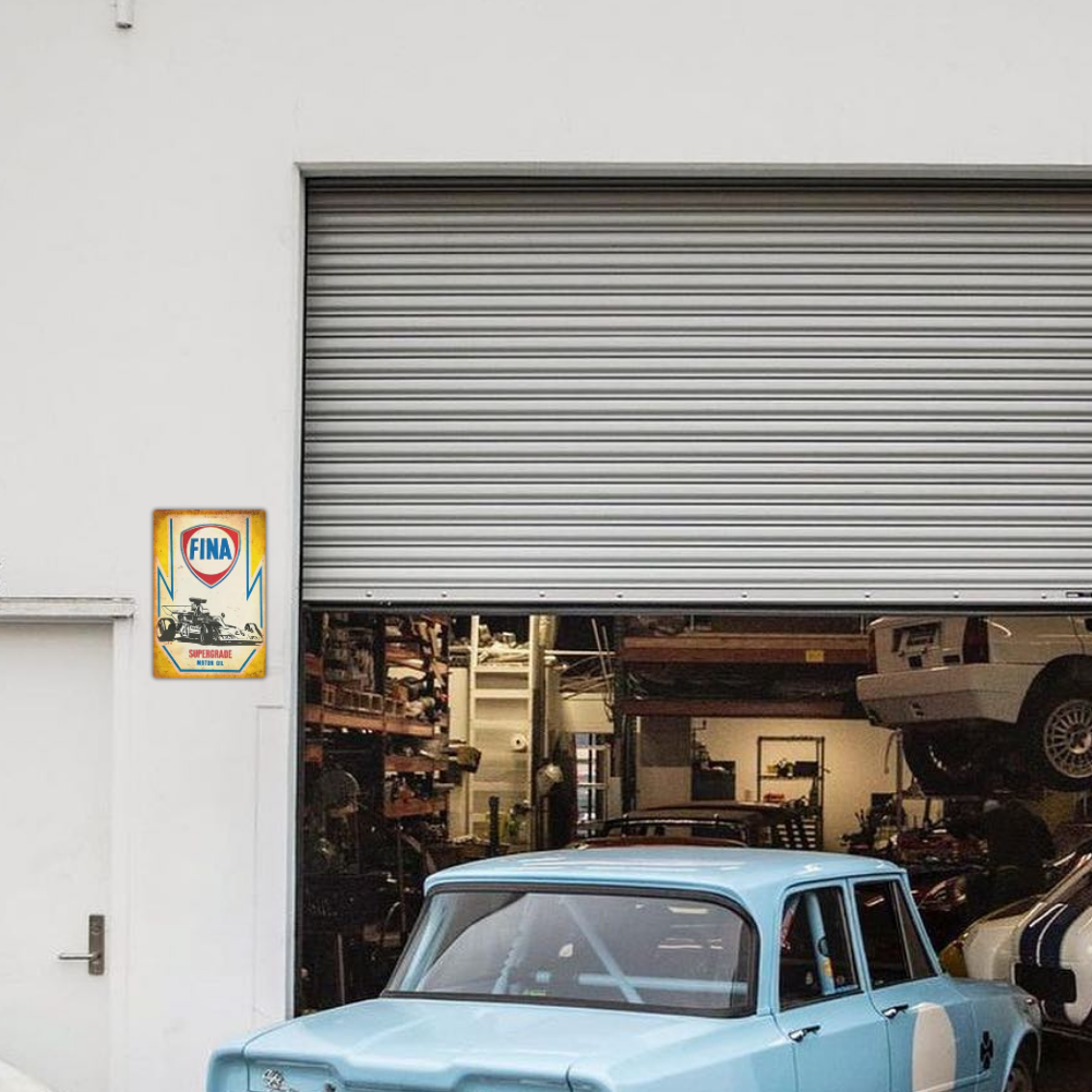 Bring Grand Prix attitude to your walls with this vintage-style FINA Supergrade Motor Oil tin sign. The bold shield logo and retro race car artwork deliver instant garage cred.