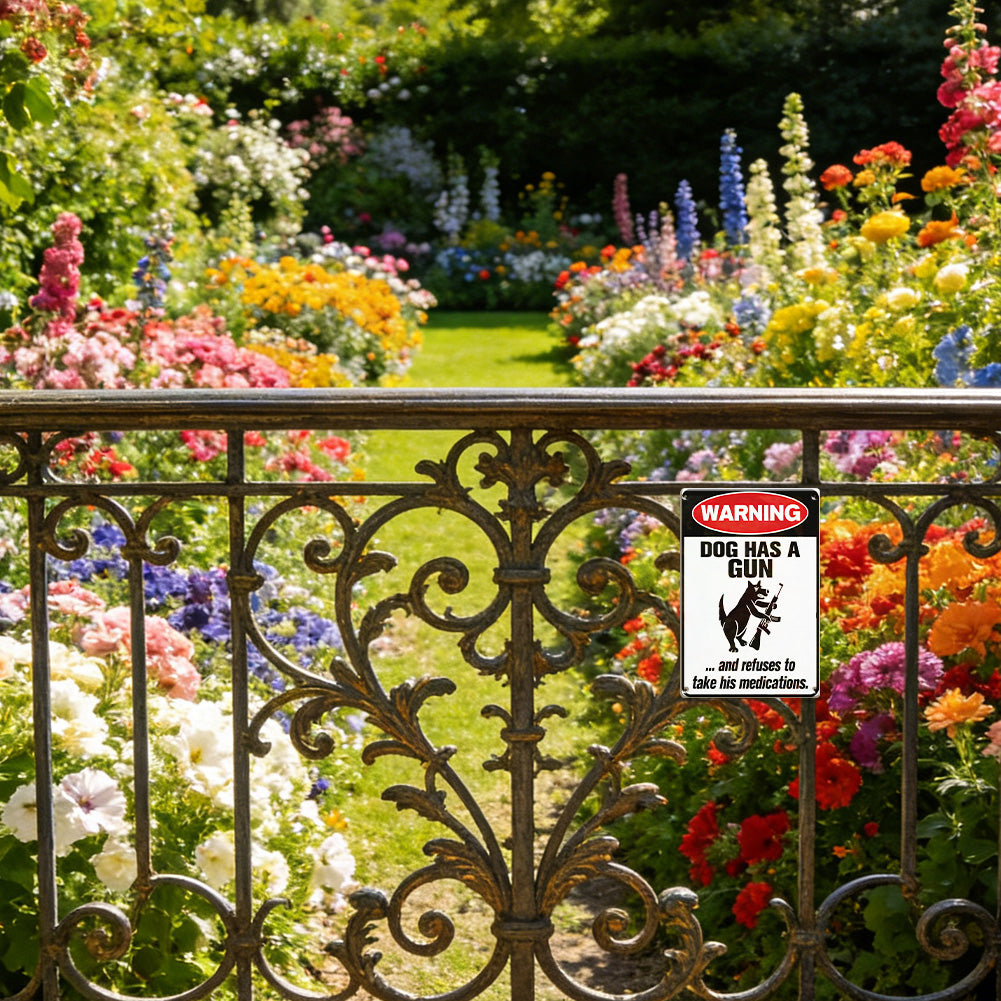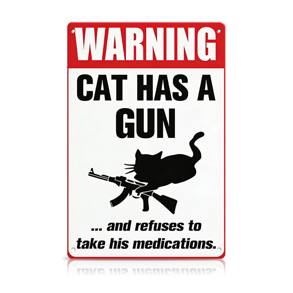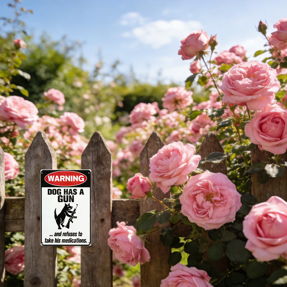 Double the warning. Double the laughs. This 2-pack metal sign set features two hilarious designs: “Dog Has a Gun” and “Cat Has a Gun,” both with a dark humor twist that instantly grabs attention.