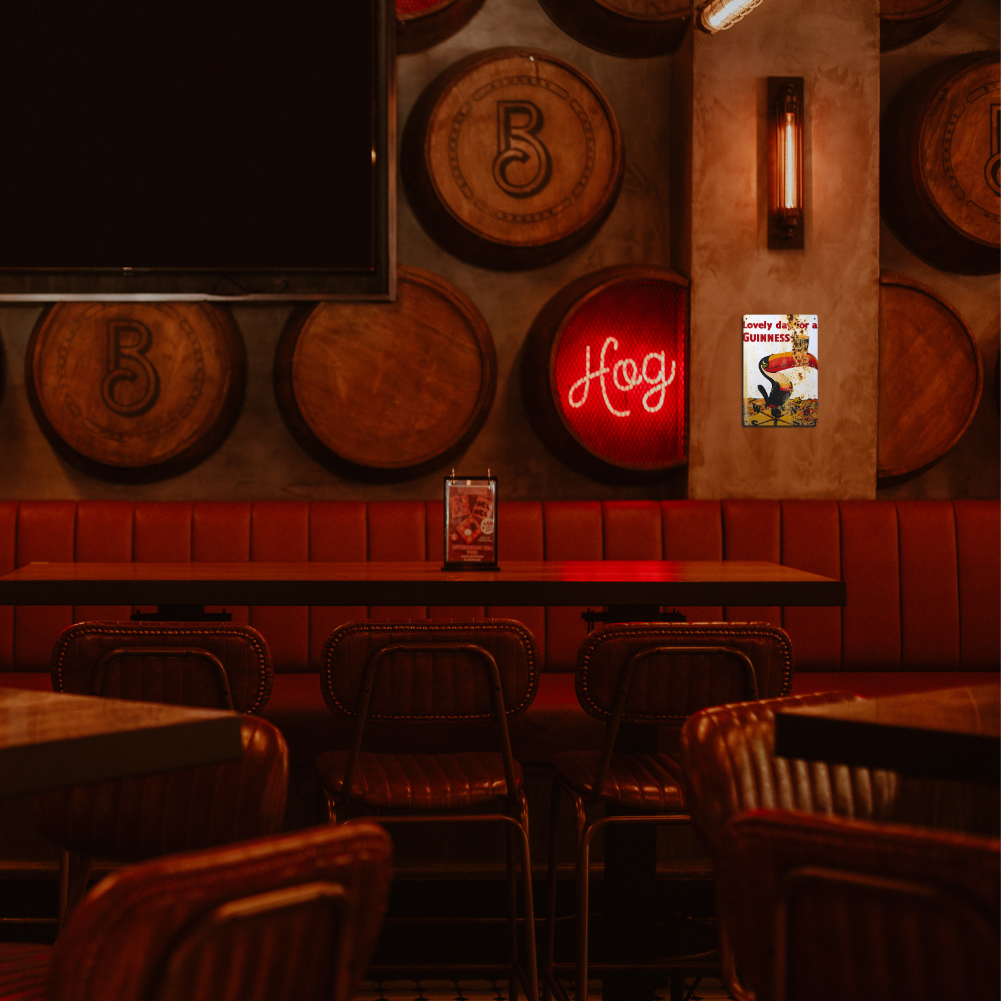 Celebrate iconic pub art with this vintage-style Guinness Toucan metal sign featuring the classic “Lovely day for a Guinness” design and weathered patina.