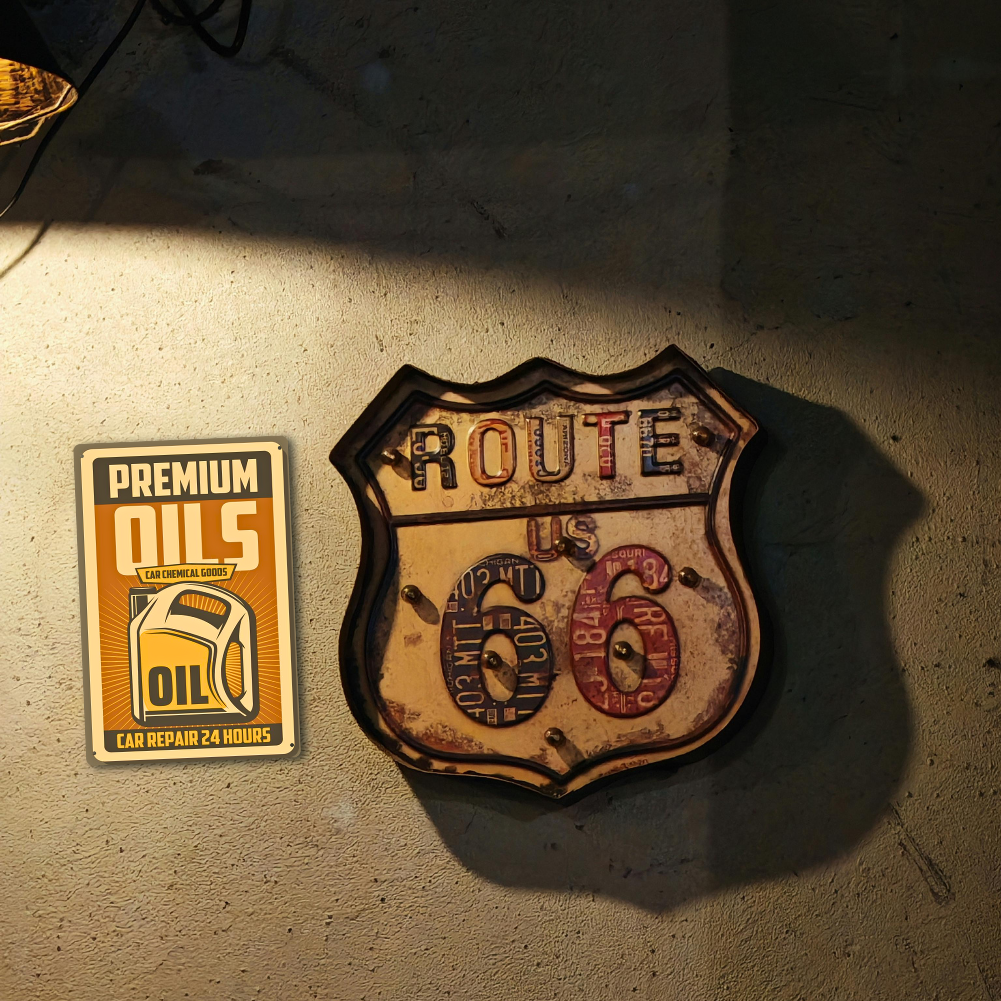 Turn any wall into a classic service bay with this Premium Oils vintage tin sign. Featuring an eye-catching oil can graphic and the “Car Repair 24 Hours” tagline, it brings retro garage vibes to your space.