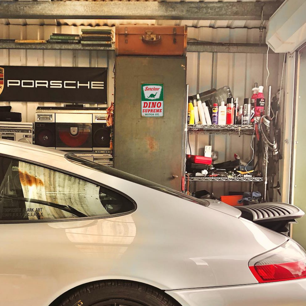 A timeless piece of automotive nostalgia that looks right at home above the toolbox or behind the bar.